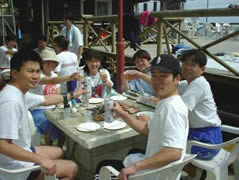 待ちに待ったBBQ!たくさんの海鮮物やお肉をやいてちょっぴり ビールなんぞたしなんでわいわい! ツアー初参加の方、一年ぶりの(ダイビング?BBQ?) 方もいてたりしてとっても楽しく盛り上がります。