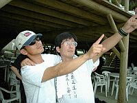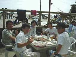 あっ、レンタルのウェットスーツ裏表に着ようとしている00さんに (良心のもと、実名報道は避けさせていただきました。)教えてあげなっくちゃ ね、あなたたちは今日一日奴隷なんですよ。心して遣えなさい。 早くもファンダイブのことを忘れてBBQに心を奪われておる00さん、 (これも良心のもと、実名報道は避けさせていただきました。) 今日はダイビングにきているのだから、(ってつもりで) ちゃんと事故のないようにセッテングしてくださいよ。