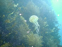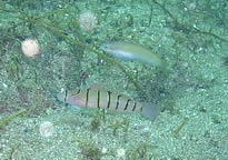 海は穏やか、水温は、水面で20度ウェットで気持ちいいですが・・・ 8メートルあたりにサーモクラインあり、10メートルほどから、 透視度がかなり良くなりましたが、(12メートルほど、水面は8メートルぐらい です。ちなみにホンダワラ攻撃もたまにあるので要注意 注5 ) 寒い!(18度)そうそうに上え上えと行くみんな、 でも40分ほどのダイビングを楽しみました。