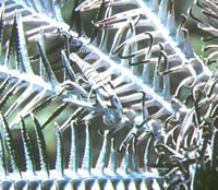 アンカーロープ沿いに潜降し、大きな岩の根を目指す。ここは瓦礫が水底に広が っている。岩(たぶんこれがフライデイズロックなのだろう)の周囲にはミゾレチ ョウチョウウオが群れており人に慣れているのか、あっと言う間に囲まれてしまい 写真を撮ろうとするとレンズポートを突っつきに来て写真をとらしてくれないので ある。次に、この岩からちょっと離れたとこにある 根に移動する。移動中、ウミシダがのんびり歩いていた。不思議な植物?である。 このウミシダの中にウミシダウバウオやウミシダヤドリエビが潜んでいる。まるで、 ウミシダは彼らにとっては行き先不明のタクシーのようである。ウミシダを見た後 根に到着。ここにはカクレクマノミのファミリーが居るのだがこの子達は、顔だち が良くクマノミ界のモデルのようであった。また、岩に付いていたウミシダには、 コマチコシオリエビが居たがこれは写真が撮り難く粘れば撮れそうだが置いてかれ そうになったので諦めたのであった。