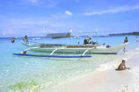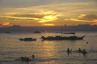 ボラカイ島は、パナイ島の北西部に浮かぶ、全長4kmにも及ぶホワイトサンドビ ーチが自慢のリゾートである。昨年のツアーは雨期であったため、残念ながらホワイ トサンドビーチを見ることができなかったし、台風が発生して、最終日にはダイビン グ中止という悔しい思いもした。