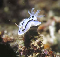 再度岩に戻り岩を一回りする。ここでは、スミレヤッコ・ニシキヤッコ・パープ ルビューティ・ヤシャベラ等ベラの仲間各種・クロモドーリス等のウミウシ各種な どFWには最適であった。 そして、アンカーに戻りEXするのであった。