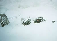 やはり当たった。水中ライトが見事に浸水しておりました。 昨日やってしまっていたのを気付かずに一晩放っておいたので、 当然電池はオシャカ。応急処置として内側を雪で洗う。 予備のライトを持ってきておいて良かった。備えあれば憂い無し。 でも、備えついでに昨日ちゃんとチェックしておけば きれいな雪をまっ茶色にしなくて済んだのにねぇ。