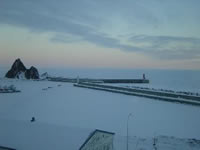 朝、6時に外を見ると一面氷である。観光客が流氷ウオークを楽しんでいた。笑い声が聞こ え結構楽しそうであった。 因みに流氷ウオークは1人5000円であった。