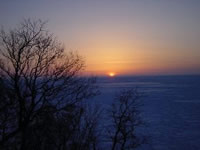 名古屋空港12:15発→女満別空港14:15着。到着時気温は−5℃でヒヤッと する。私個人的には花粉の飛んでいない北の大地が心地よい。空港から路線バスでまずは 網走駅。そこから特急知床号ウトロ温泉に直行である。 道中、車窓から流氷を眺めながら移動。山に目をやるとエゾシカも出迎えてくれた。