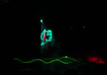 食事を終えオーロラショウを見に行く。ドライのインナーでいざ出陣。藁を燃やした 煙にレーザー光線を当てオーロラを再現させるのである。最後はクリオネが羽ばたいて いた。宿に戻り冷えた体は温泉に浸かって温めるのが一番である。