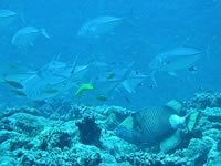 現地のガイドも喜ぶアグニです。 いました、ギンガメの群れ、ぐるぐる回れ回るんだあ・・・、10匹程度で回ってましたね、ギンガメの群れは。 潮上のダイバーから逃げていきました少し残念。