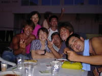 ホテルに帰って機材を洗い、今日の夕飯はバーベキューです。 ホテルの別館(?)の屋上で生ビールを飲みながら食べるバーベキューは最高!! そして、バーベキューの参加者みんな巻き込んでの大ビンゴ大会。 2回戦3回戦と盛り上がり、持っていったカードを使い果たしてしまいました。 秘密兵器、大活躍でした。