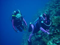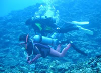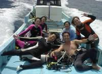 さすがに飛行機は多少揺れました。那覇空港でJTA209便に乗り換えて12:15久米島空港到着。 お世話になる高里マリンスポーツクラブの米倉さんがマイクロバスで出迎えに来てくれていました。バスに荷物を積み込んでイーフ観光ホテルへ向かい、 ホテルで荷物を整理して早速ダイビングへ。台風の影響で西風が強く、潜れるポイントは限られるとのこと。