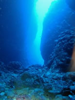 2本目はウーマガイ。待ってました、バリバリのドロップオフ(意味不明)。 棚から離れて海の中を飛ぶような感覚。気持ちいい〜!! 棚上に上がるとカミソリウオが2匹、うねりに身を任せて漂っていました。 我々もうねりに身を任せ・・・酔いそう・・・