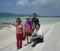 そして最後に畳岩で記念撮影。しばらく来ない間に立派な駐車場や建物ができていました。 そこのレストランで昼食をとり、観光終了。 ホテルに帰り、荷物をまとめて空港へ。15:05久米島発、那覇経由で20:00名古屋着。 空港を出ると・・・あ、暑い!久米島より断然暑い!! いつものことながら岐阜の暑さにへき易する一同でした。 |
