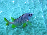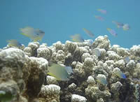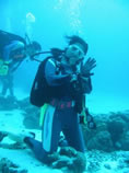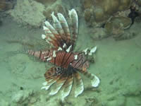 無人島で昼食を取ってマラカル島に戻り、ビーチでバディ単位での無制限ダイブ。 三年前に潜った時に比べて少しサンゴが元気になっていた。 透視度は決して良くないが、カニハゼ、マンジュウイシモチ、ニシキテグリ等の面白い被写体が 点在しており、宝探し感覚で潜れて面白い。小物だけかと思ったら カスミアジやコショウダイ、ウミガメなんかもいたりして結構侮れないのだ。 潜水時間59分、最大水深5.5m。一番最後まで潜ってました。