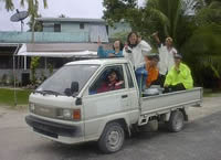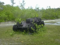 いつの間にか雨も上がり、トラックを借りて島内観光へ。 ペリリュー島はかつて日本軍の基地があって、島のあちこちにその形跡が残っている。 戦車や飛行機の残骸、司令部や発電所の跡等を案内してもらう。 ブランコの家に寄ってアイスキャンディーをご馳走になり、約1時間の観光を終えて帰途に着いた。