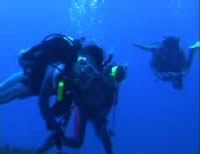 あれよあれよという間に早くもラストダイブ。かめちゃんを探しに出発。もちろん真っ先にエントリーしたのはかめちゃん。頼むよー。さて、どよよ〜ん とした海の中を進むと遠くにマダラトビエイがっ!全員狂ったようにダッシュ!しばらく行くとアオウミガメがご休憩中。みんなに囲まれ逃げ場を失い固まって ました。その後再びみんながダッシュ!!さらに大きなウミガメが泳いでいたそうです(伝聞表現)。さらにさらに三度ダッシュ!!!今度は見たよ〜。あまり の大きさにマンタと見まがう程巨大なカメでした。ログ付けの時聞いたら 6 人中 4 人がマンタだと思ったそうです。座間味最後のダイビングはダッシュしまくり体育会系ダイブであった。潜水時間 47分、最大水深 15m、水温 27℃、透視度どよよ〜ん。