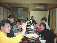 今年最初の飲み会。いつものように最初は「扇屋」、そしてカラオケへ。 え?延長?みんなノッてるねぇ。そして最後は平木邸でワインを飲みながらまったり。 そして就寝時間は朝の6時。 しかし9時にはモーニングを食べに喫茶店へ。