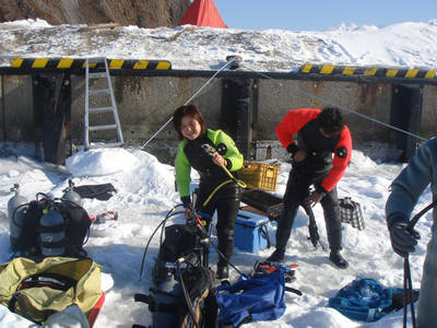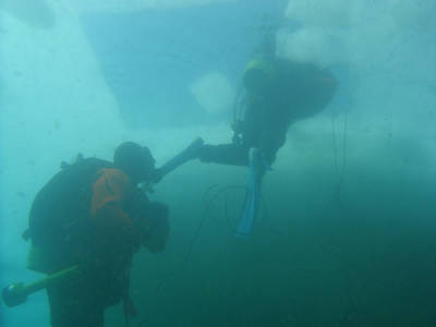 初潜りは嫁島のマグロ穴でした。元日早々、一番乗りです。でも海が時化始め2本目は父島まで戻り