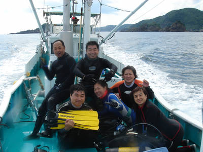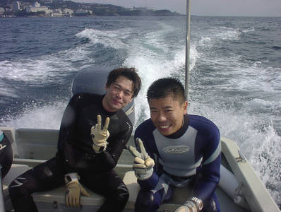 海洋は午前中ややうねり、午後から少し波が出てきたがダイビングにはまったく問題なーし、水中は春濁りらしき状況、これから