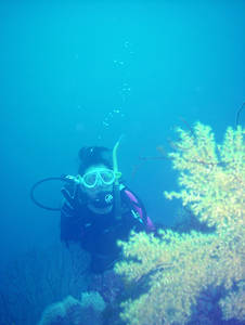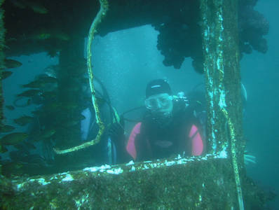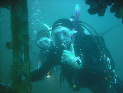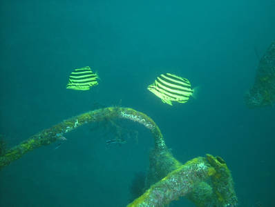 1本目はビーチで身体慣らしその後、沈船透視度はいまいち、しかし、魚影の濃い事この時期の