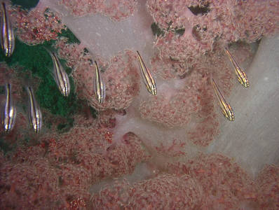 少しずつ水が綺麗になりつつあるようです。潮が入ると透視度のよい水が入るので