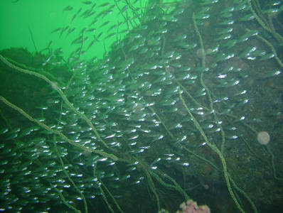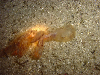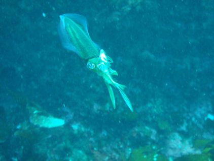 海中には、アジがびっしりそこへイカがアタックとワクワク,ドキドキの海でしたよ、ナイトではメリベウミウシの捕食