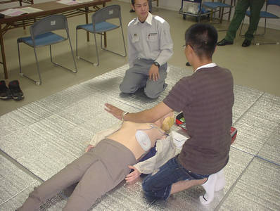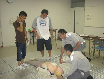 今回の参加者は4名でアツーイ講習となりました。消防署員の方の忙しい時間出動があったりしながらも、署員のみなさんで