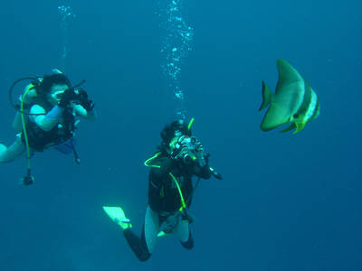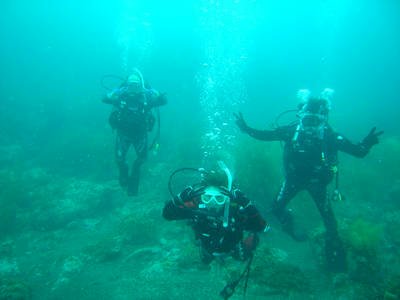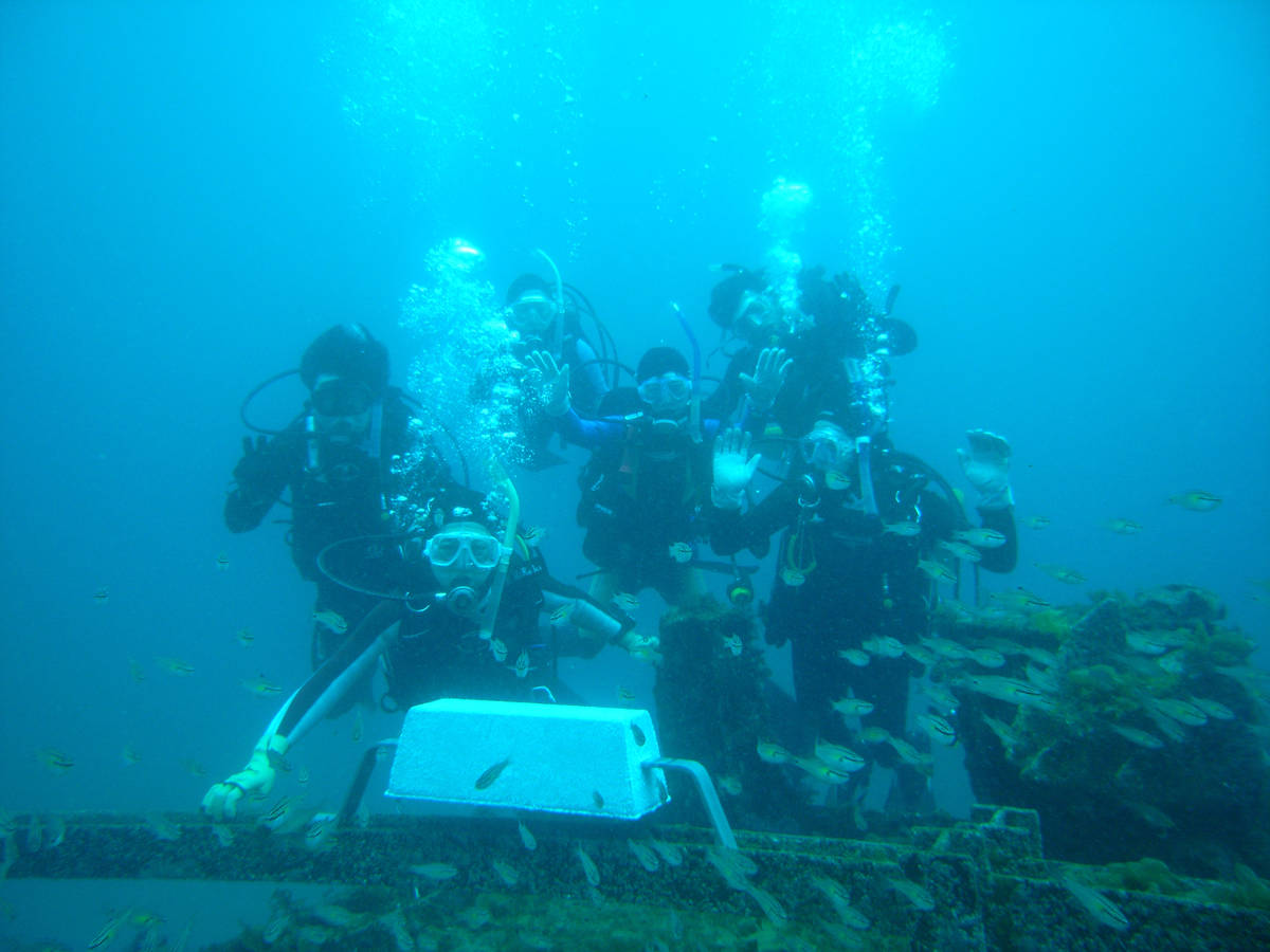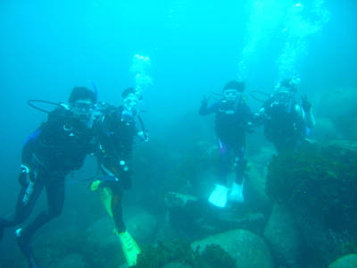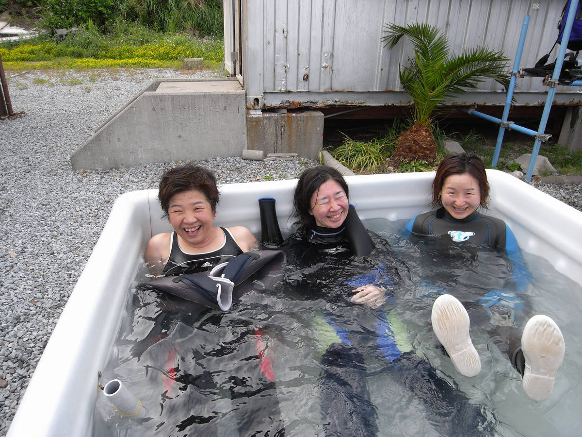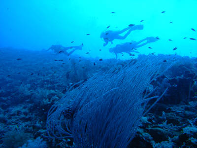 いますが、その横で多くのダイバーが次々と海へ、私達もエントリー水中は多くの人がエントリーしているためか