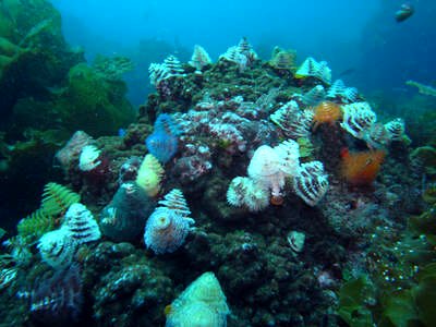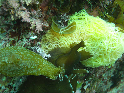 ぶどうの房のように白く綺麗ですねー。ビーチ右12m.では綺麗なカエルアンコウ・の近くでとても可愛らしい