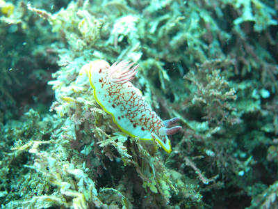 (二枚岩右奥の岩西側)それと、ミノウミウシ系のエクソプタータも可愛らしく岩壁に張り付いていましたね。