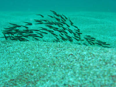 カンパチ>゚)))彡と>゚)))彡ワラサのアタックも見れたけど一瞬でした。(゚))<<アジ君たちの動きがそわそわ落ち着きが無いときは