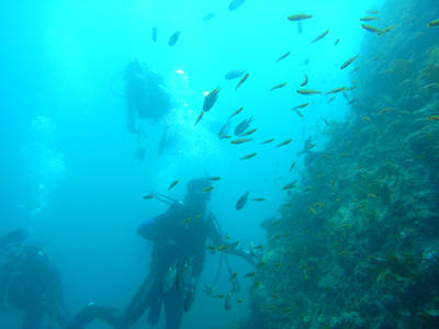 ログ前ビーチは何処よりもソラスズメダイが群れていて楽しませてくれるところですね、今回は多人数のため