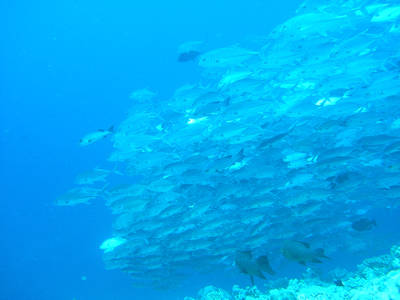 【海洋状況&日記】今年初潜りは、にきじま今年から以前に潜っていたポイントに潜れる事に なり、早速入ってみましたが、やはり潮目は流れがあり、でも入ってすぐハマチの20匹ほどのアタックがあり ネンブツダイ、ハタンポ、キンギョハナダイ、スズメダイなどむれが元気に泳いでます。 今年の夏は、チョット面白いかもしれません。(HIRAKIオリジナルポイントです)
