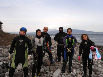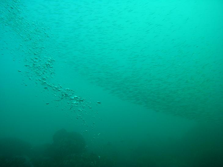 湾内、すごい魚影ですねと40分のダイブも寒くないですよーとニコニコ、2本目は柵下へいやな感じはありましたが、