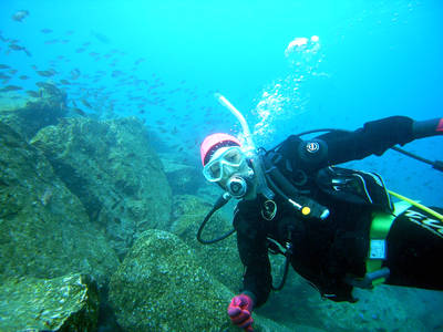 2日目は、外どんぶらこで潜水できず湾内で楽しみ、ついでにドライで楽しみましたが、透視度はさらに悪く(はぁ・・・・)