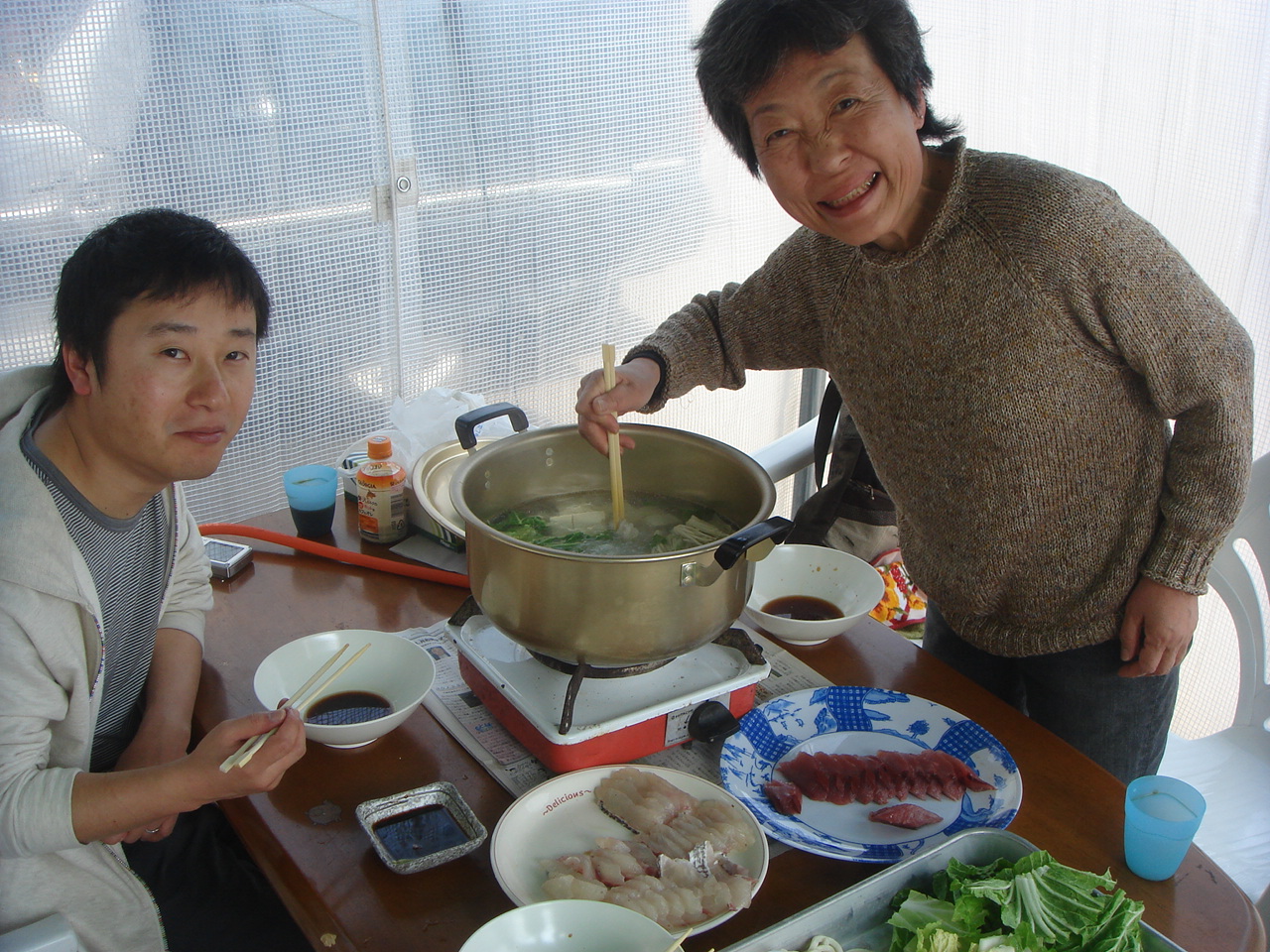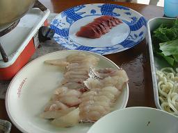 【海洋状況&日記】タイ食べ放題ツアーです。 食べる前にダイビング。透視度は今一でしたが、ネコザメやナヌカザメや 巨大ヒラメに出会えました。 昼食は、タイのしゃぶしゃぶです。それに、カツオの刺身。 大変美味しく頂きました。次は、ビールやおにぎりなんかあるといいかも。、etc