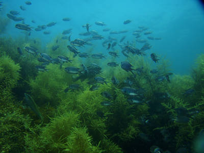 【海洋状況&日記】豚汁DAY、出来上がり上々、これも好評でした。 南越前は、まだまだモヅクが沢山暖かい海面近くは子供のスズメダイがのんびりと泳ぎ 海藻の上では、陽射しを浴びるように、オキアミの仲間が群をなして、います。