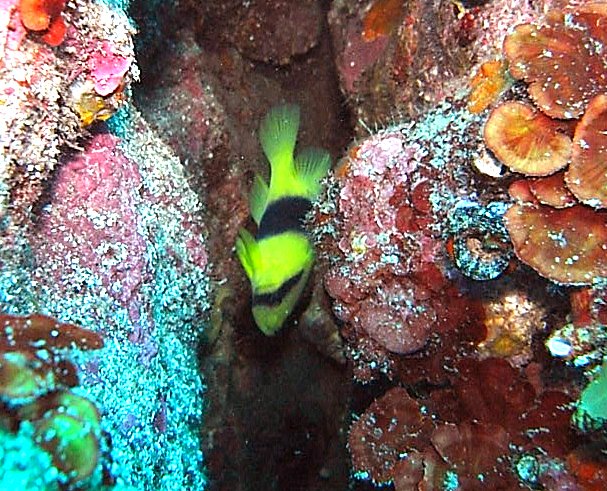 【見れた魚等】 沖の海は、やや濁りが入っていまいちもう少し起伏があるといいんだけどね ビーチの恵比寿岩はキハッソクが、がんばってテリトリーを守ってました。 黄色い帯が印象の日本海ではやはり珍しい。・etc