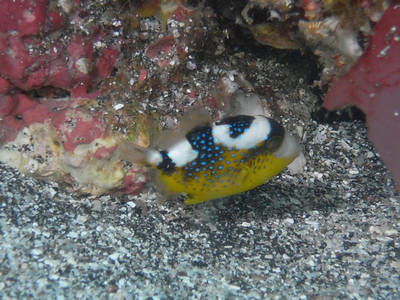 【見れた魚等】 ルリハタ、イサキノ群、ベニカエルアンコウ、イソモンガラYG、アオリイカの産卵、ミナミハコフグyg、ビシャモンエビ親子?・etc