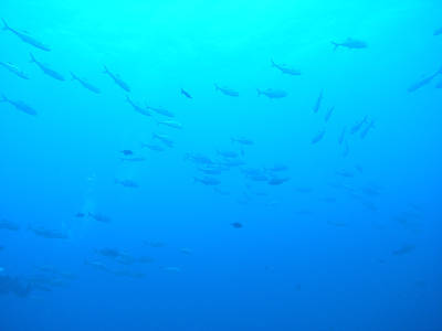【見れた魚等】キンチャクダイ・ソラスズメダイ・キンギョハナダイ・ツバス・コスジイシモチ・オキゴンベ・スケロクウミタケハゼ・イトヒキベラ・ミツボシスズメダイ・ホウキハタ・ハナハゼ・etc