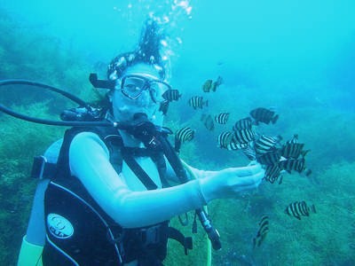 【海洋状況:後記】シーズン到来、穏やかな海、中層はサーモクラインの影響で視界がすこし もやもやしています。魚も多くて楽しい海でした。公園内はダイバーで一杯、今年からテーブル席を 予約出来るようになり楽チン楽チン。