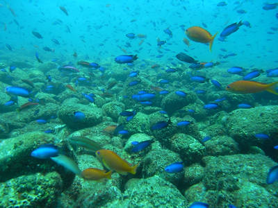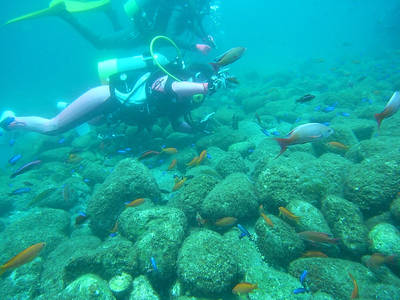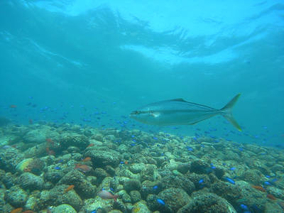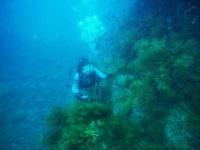 【海洋状況:後記】日増しに魚影も濃くなり始め味はかなりの群れを作っています。スズメダイは1p程の生まれて間もない群れも、イサキも徐々に集まってきています。カマスも小さいながら集団を形成しています。ポイントによっては、それらが集まりかなりの集団を形成し、カンパチノ子供がアタックに来ています。これからが益々楽しみ、また石鯛の子供がダイビング中20個体程付きまとい可愛い潮もいい感じになりつつあります。 そんな楽しみなポイントです。